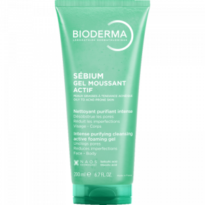 Pročišćavajući aktivni gel za umivanje namijenjen je za kožu sklonu aknama. Sébium Gel moussant actif (aktivni pjenasti gel) sadrži dva aktivna sastojka (salicilna kiselina + glikolna kiselina) koji intenzivno čiste i pročišćavaju kožu bez isušivanja. Poštuje prirodnu ravnotežu i podiže prag tolerancije kože. Njegova "gel" tekstura pretvara se u pjenu i ostavlja kožu mekom i ugodnom. Dobra je podnošljivost na koži i testiran pod dermatološkim nadzorom. Pomaže kod pročišćavanja pora, smanjenja nedostataka i sjaja.