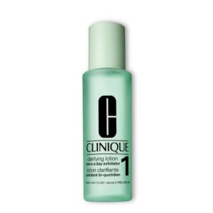 Tekući eksfolijator razvijen od strane dermatologa pomaže ukloniti odumrle stanice kože za zaglađeniju i blistaviju kožu. Nježna i osvježavajuća formula, vrši nevjerojatne promjene za tvoju kožu. Ovaj losion će s lakoćom dubinski očistiti sve nečistoće i onečišćenje, ostavljajući tvoju kožu čistom i zadravom. Priprema kožu za daljnju njegu poput seruma i/ili kreme. Clinique Clarifying Lotion linija ima niz formula za različite tipove kože; masnijim tipovima čisti pore i uklanja višak sebuma, dok suhim tipovima pruža potrebnu vlagu i zaglađuje fine linije.
