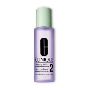 Tekući eksfolijator razvijen od strane dermatologa pomaže ukloniti odumrle stanice kože za zaglađeniju i blistaviju kožu. Nježna i osvježavajuća formula, vrši nevjerojatne promjene za tvoju kožu. Ovaj losion će s lakoćom dubinski očistiti sve nečistoće i onečišćenje, ostavljajući tvoju kožu čistom i zadravom. Priprema kožu za daljnju njegu poput seruma i/ili kreme. Clinique Clarifying Lotion linija ima niz formula za različite tipove kože; masnijim tipovima čisti pore i uklanja višak sebuma, dok suhim tipovima pruža potrebnu vlagu i zaglađuje fine linije.
