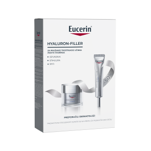 Eucerin Hyaluron-Filler 3x krema za područje oko očiju anti-age je njega za područje oko očiju s hijaluronskom kiselinom, saponinom i enoksolonom koja suzbija proces starenja za vidljivo glatku, blistaviju kožu i kožu mladenačkog izgleda.