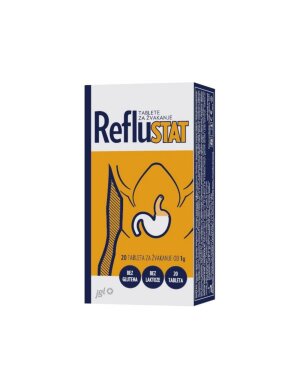 Reflustat tablete za žvakanje svoje djelovanje baziraju na natrijevom alginatu te karbonatima: natrijevom bikarbonatu, natrijevom karbonatu i kalcijevom karbonatu.5% dodatnog loylaty popusta možete ostvariti samo jednom pri prvoj narudžbi nakon učlanjivanja u webshop loylaty klub. Nakon što ste jednom ostvarili 5% popusta dobrodošlice počinjete skupljati bodove unutar Mandis webshop loyalty kluba koji je u potpunosti odvojen od loyalty kluba na fizičkim lokacijama. Za svakih 700 bodova dobiti će te 10% popusta na webshop asortiman koji se može iskoristiti na asortiman koji nije snižen u tom trenutku.