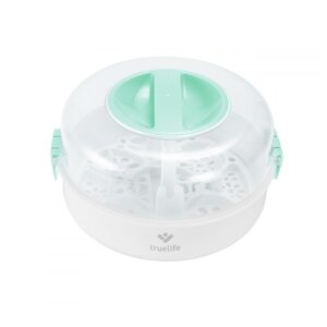 Čuvanje imunološkog sustava vašeg djeteta ne mora značiti stalno prokuhavanje bočica i duda. S TrueLife Invio MS5 mikrovalnom sterilizatorom možete sterilizirati bočice, dude i druge predmete za samo dvije minute. Sve što vam treba je obična voda i mikrovalna pećnica. Zatim koristi parnu sterilizaciju, industrijski standard u bolnicama, koja je brza, učinkovita i bez kemikalija. Uništava 99,9% bakterija i mikroba bez oštećenja površine. Sterilizator je dizajniran za većinu mikrovalnih pećnica na tržištu i može stati u većinu bočica za bebe. Može držati do 5 bočica, jednostavan je za upotrebu i zahvaljujući svojoj kompaktnosti, lako ga možete ponijeti sa sobom na putovanja.